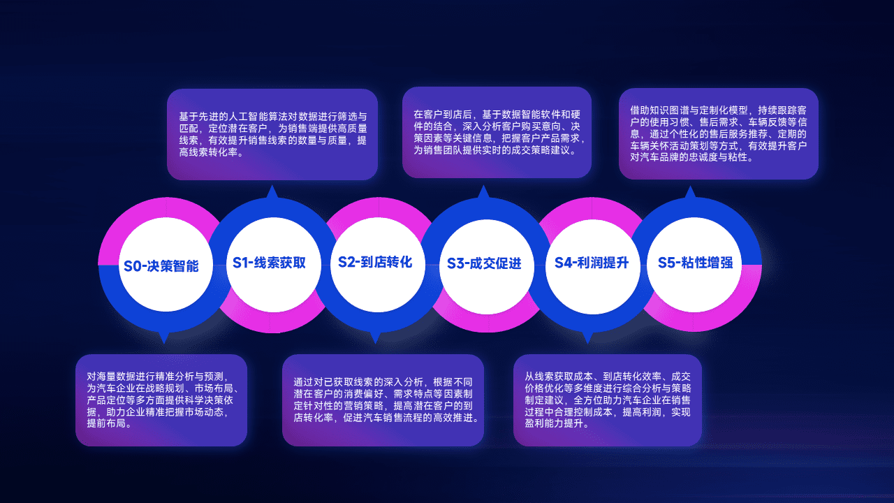 通过拓宽潜在客户来源、、、、优化线索分配并提高到店转化率,,,,以增强销售效率。。。同时,,,利用线索数据不断优化分析模型,,,有效提升转化率,,,扩大营销影响力。。